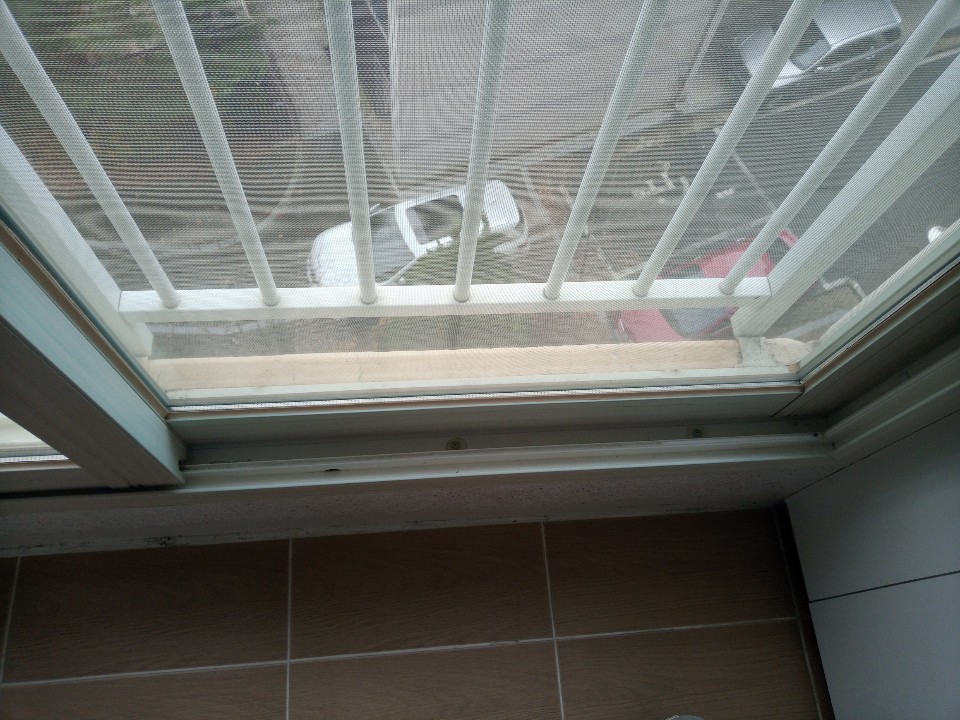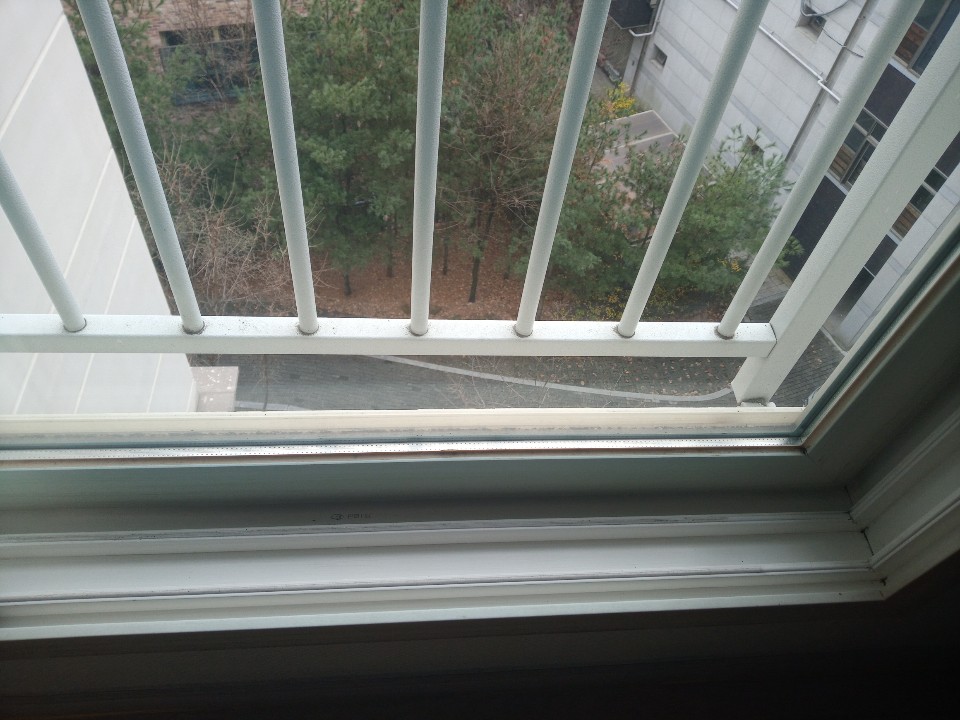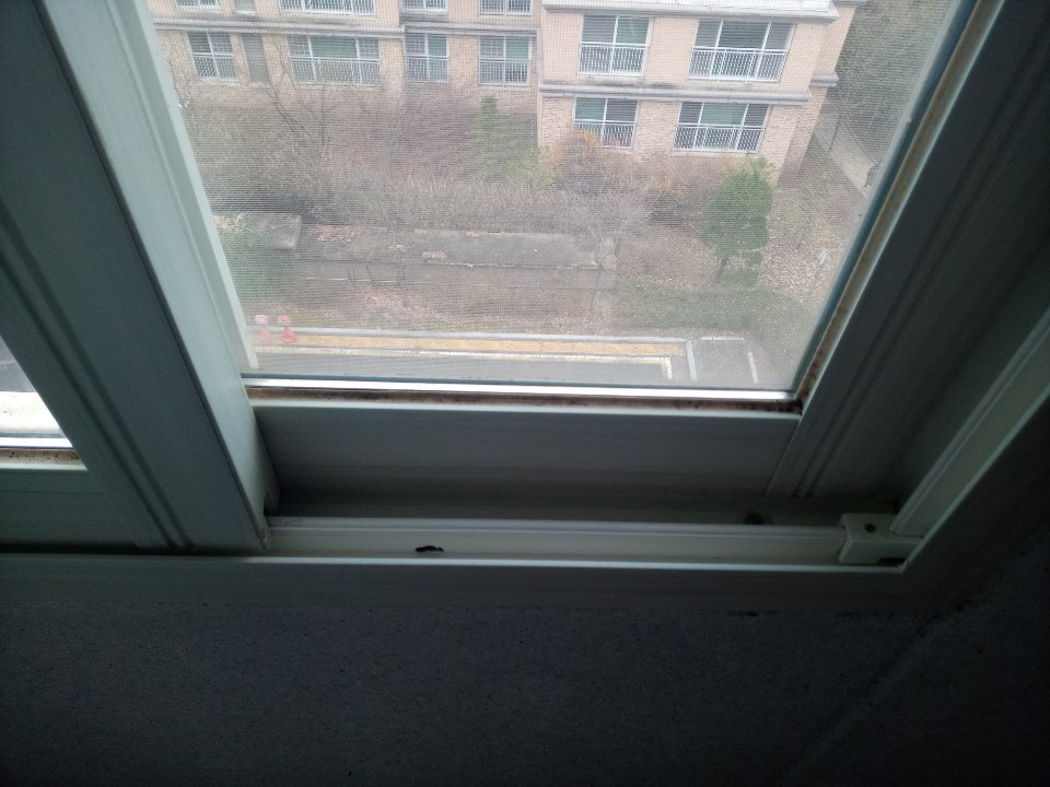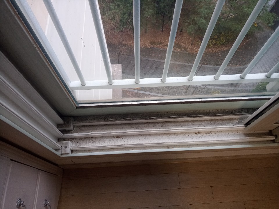 드물게 보는 창틀에 쌓인 오염물 퇴적층,