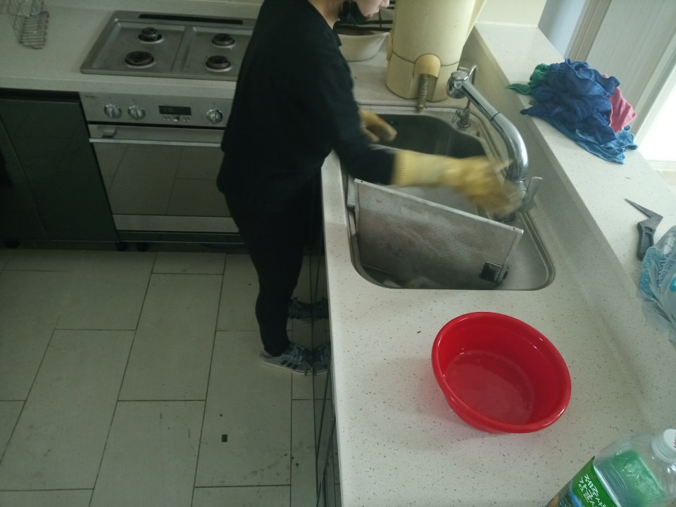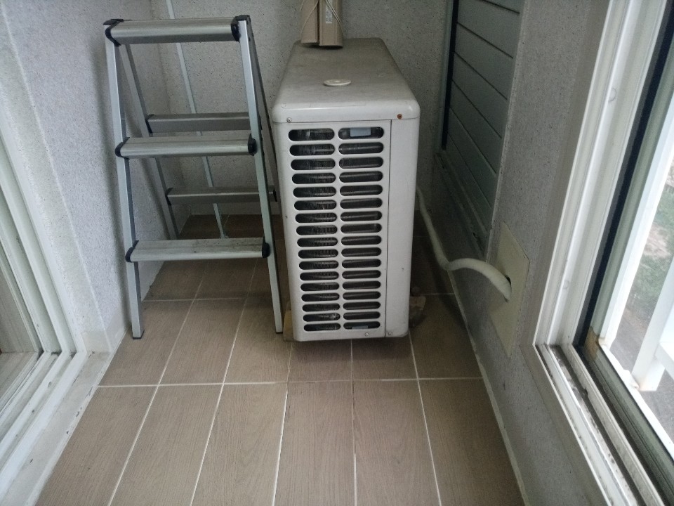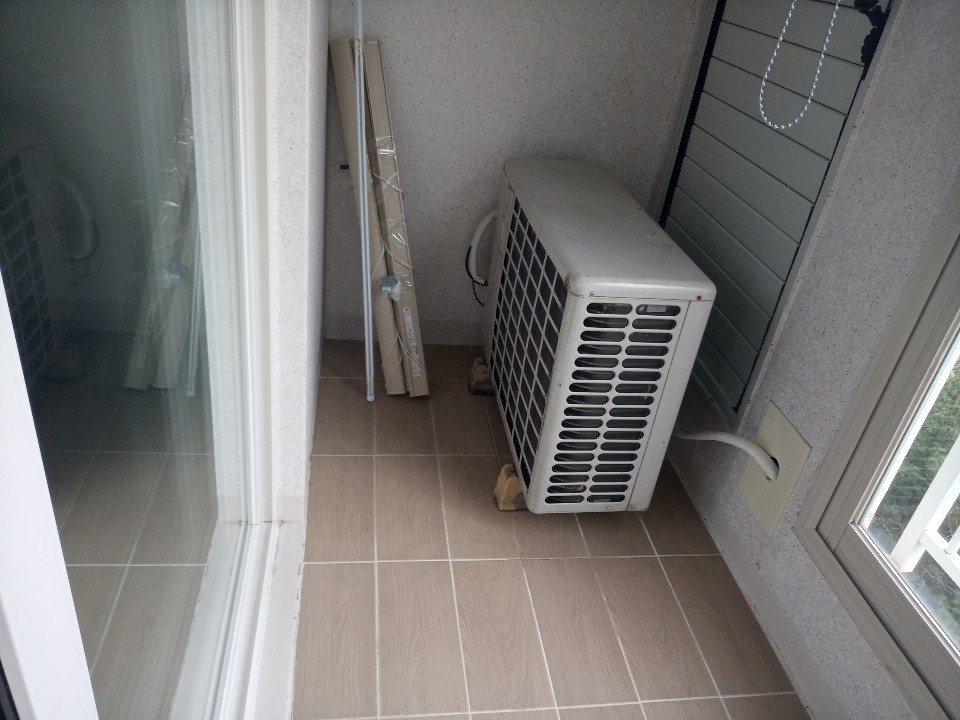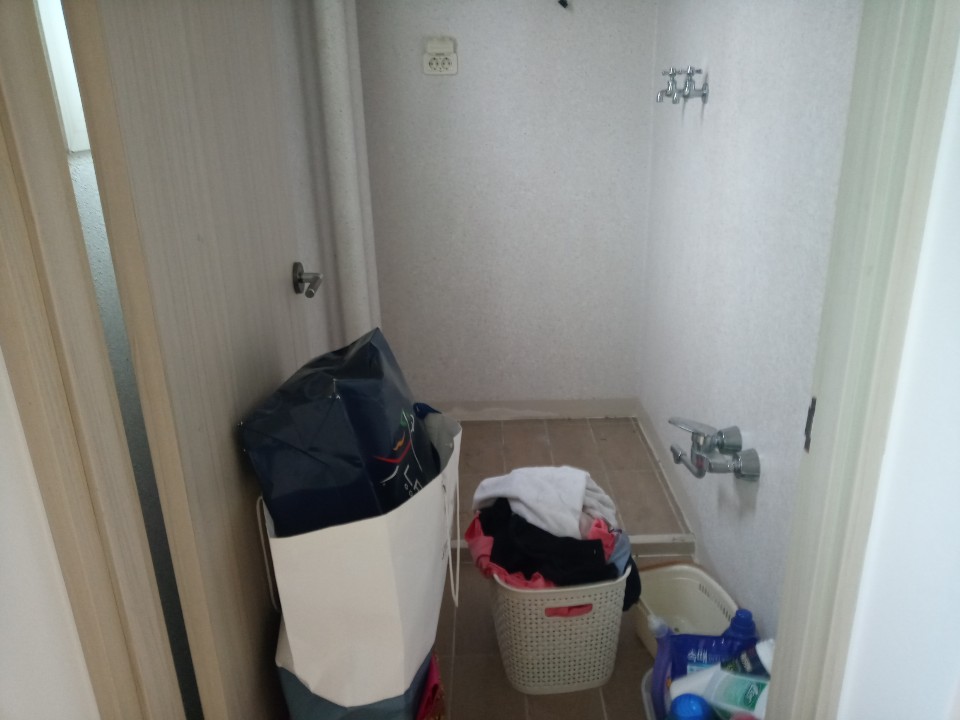 베란다에는 짐들이 쌓아 놓고 최소한의 공간을 활용해 청소.