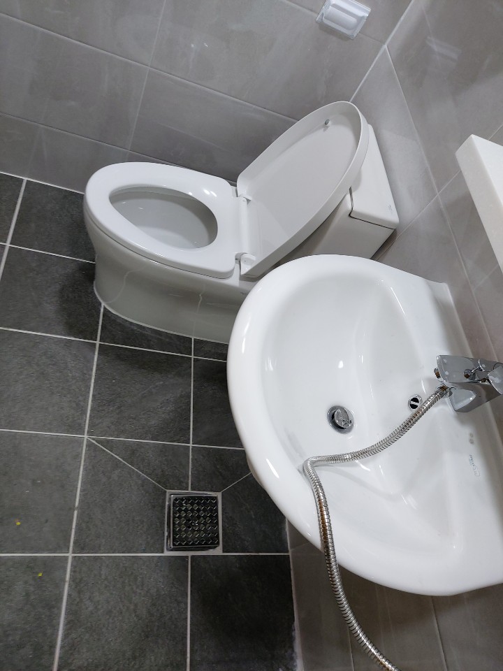 세면대와 좌변기, 수전은 세척작업을 하고