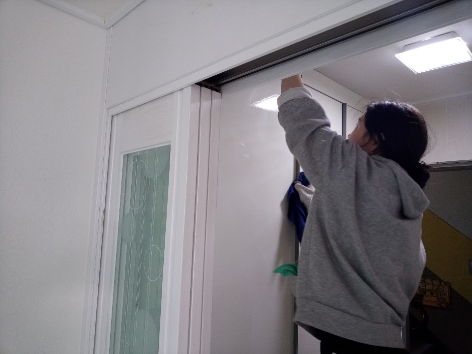 방과 거실에 연결되는 미닫이문의 창틀도 마찬가지로 깔끔하게~~