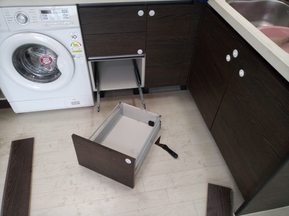 상부장, 하부장 내부 선반 모두 하나하나 분리하며