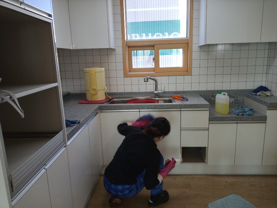 싱크대 내외부 청소는 물론 배수관, 하부장, 걸레받이 등 모두