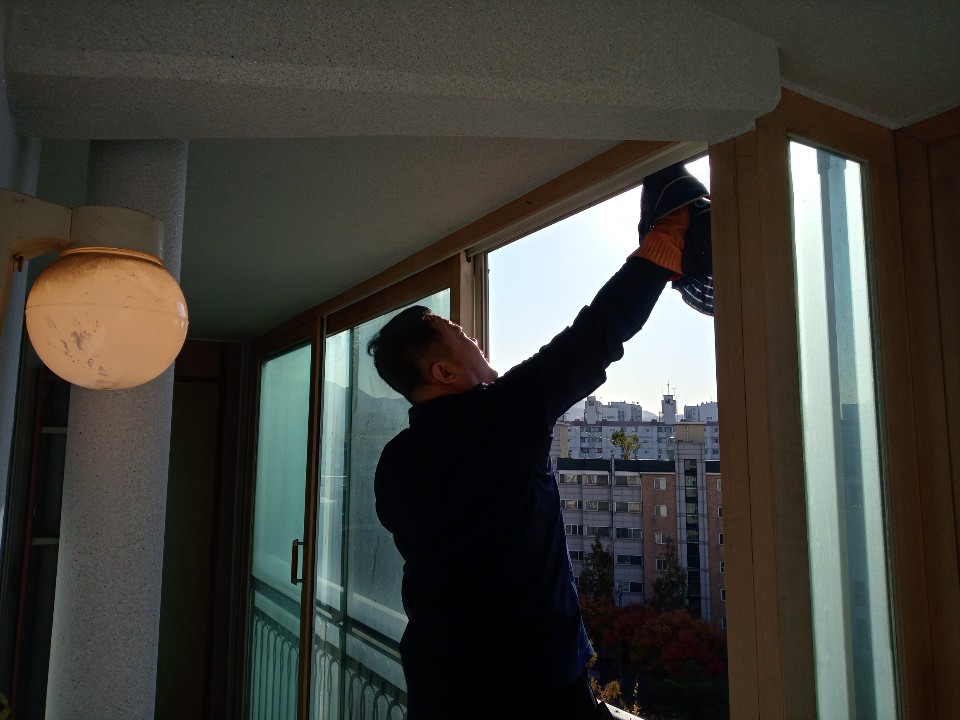 창틀과 문도 깨끗이 청소하고, 보이는 곳 안 보이는 곳 모두 찾아 청소합니다.