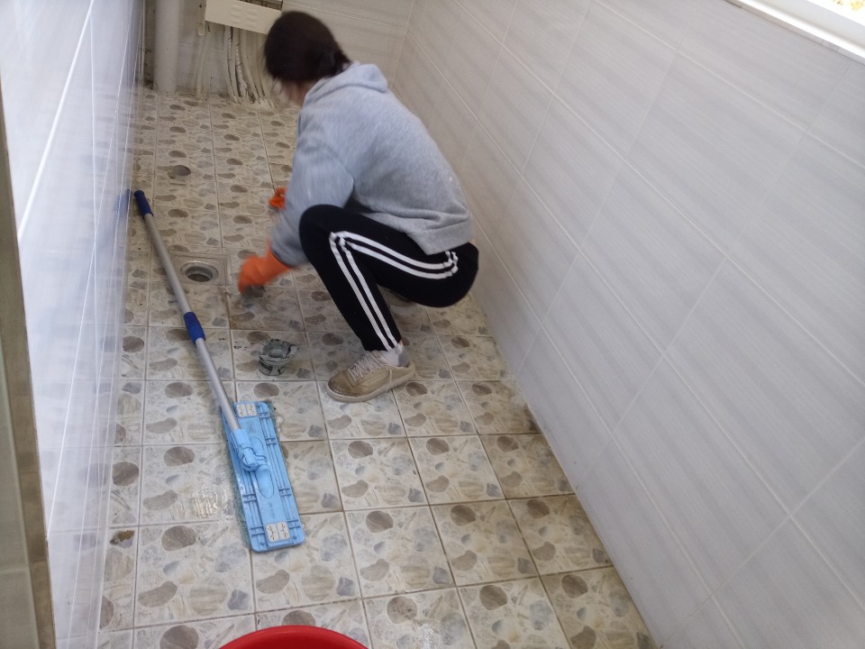 바닥 먼지와 찌든 때를 제거하고 배수구 청소도 하였습니다.