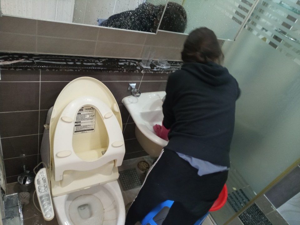 욕실은 전반적으로 물때를 먼저 청소진행하고,