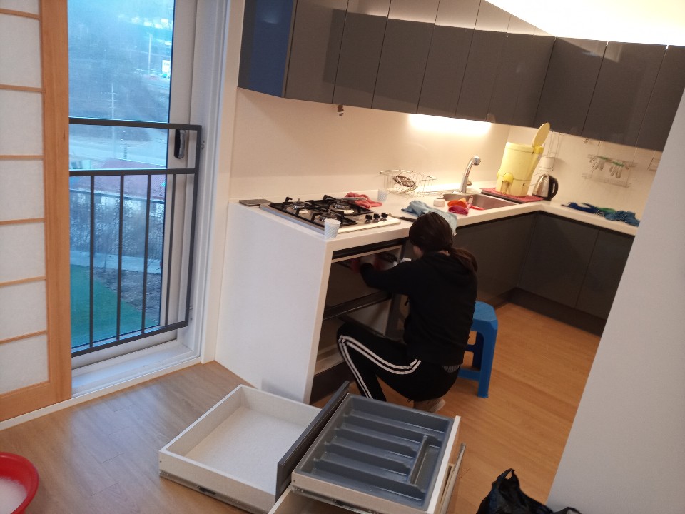 싱크대 및 환풍기 후드까지 탈거하여 일일히 청소합니다.