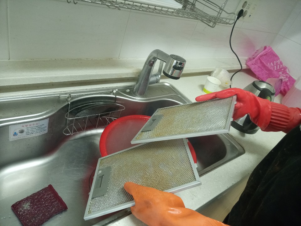 기름제거 전용세재를 이용해 최대한 닦아냅니다.