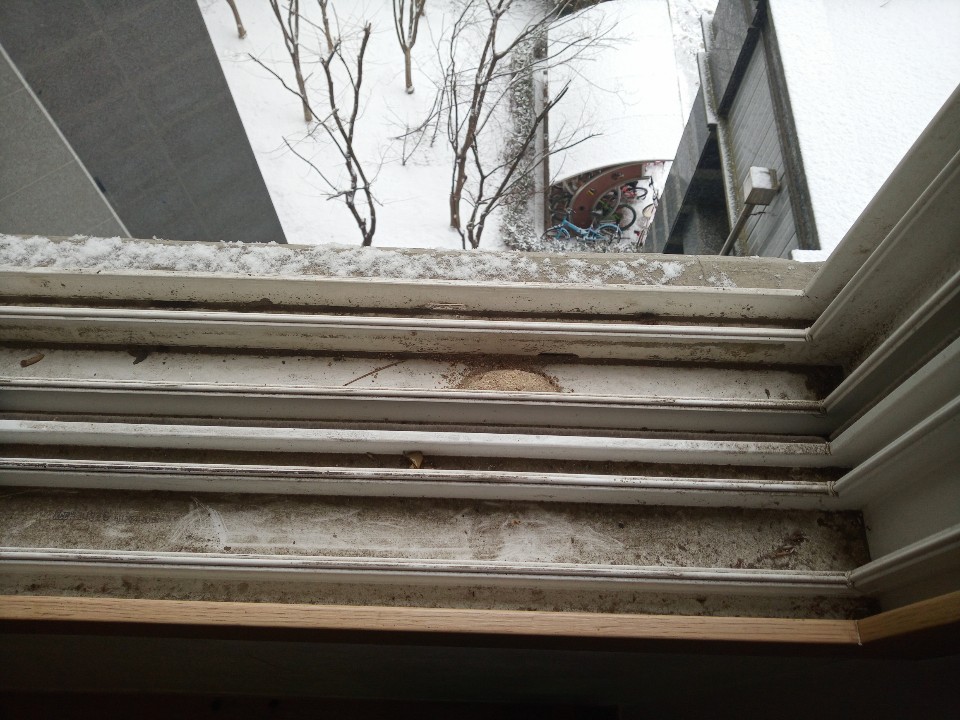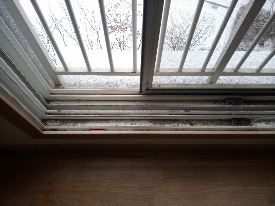 샷시창틀엔 오랜 흙먼지,곰팡이,착색 등