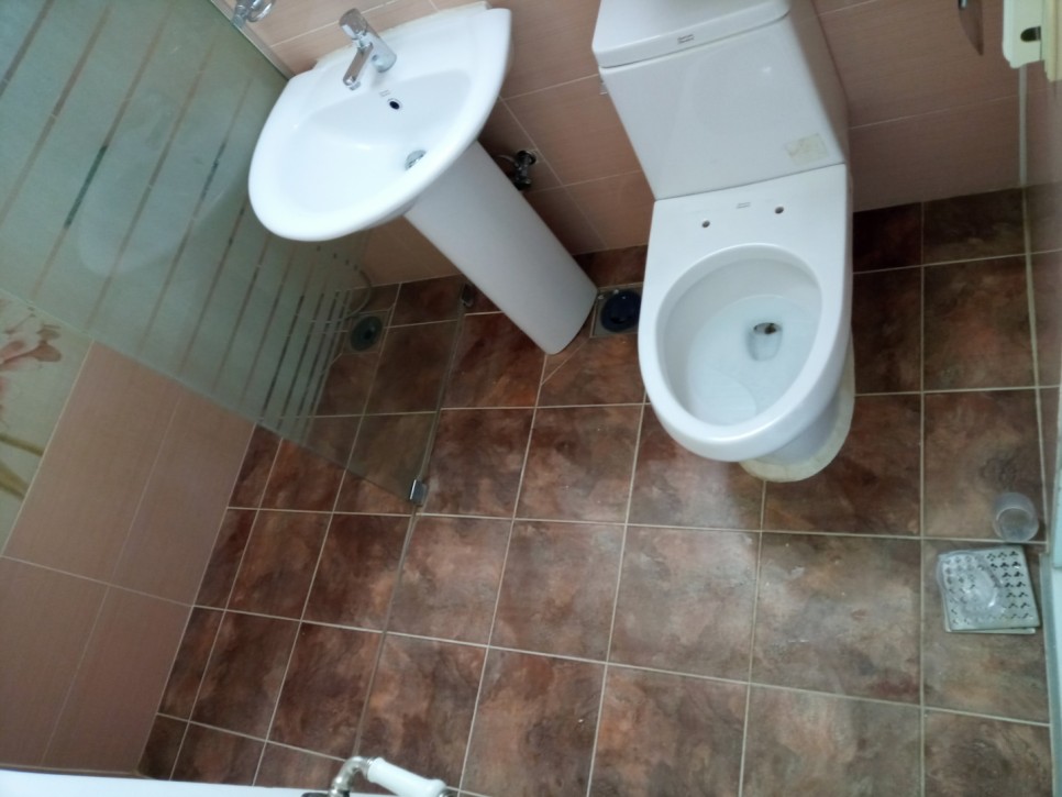 화장실 타일 물때와 변기 뒷쪽에