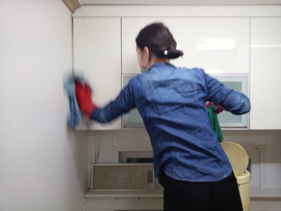 깔끔하게 정리합니다.주방 청소는 상부수납장부터