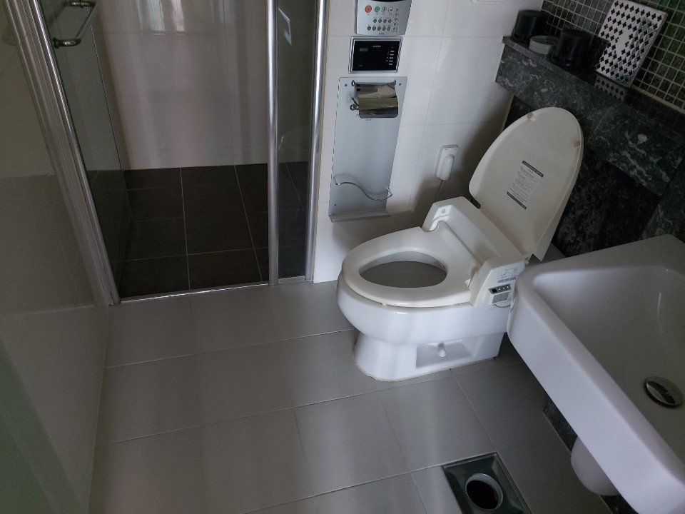화장실은 변기, 세면대, 수전, 샤워기, 욕조, 환풍기, 배수구,