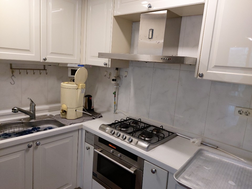 주방의 수납장도 탈거, 걸레받이도 뺀 후