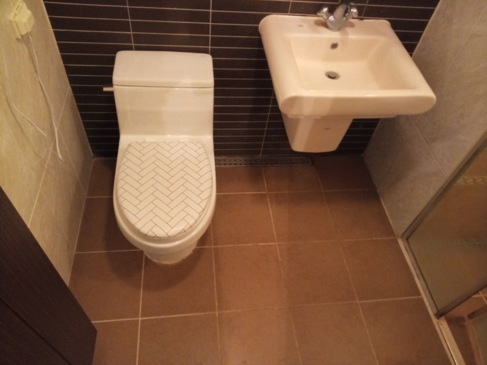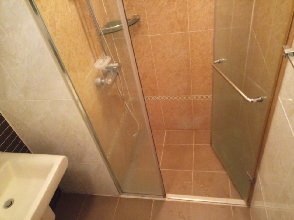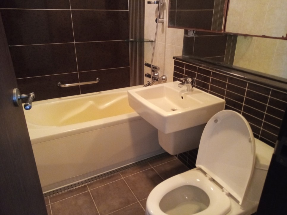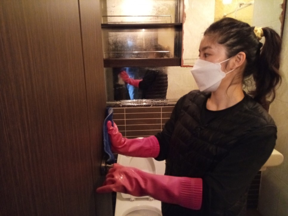 작업으로 욕실의 얼룩을 말끔히 닦아내고,