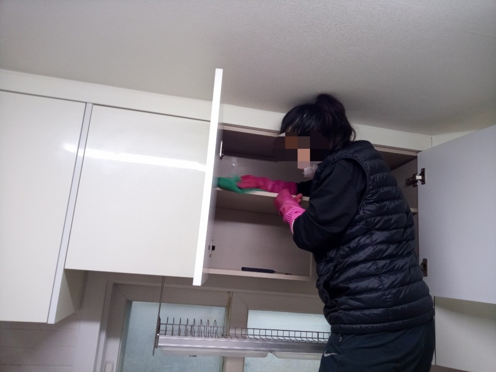 흡진하고 구석구석 닦아냅니다.싱크대 내외부 청소는 물론 배수관, 하부장,