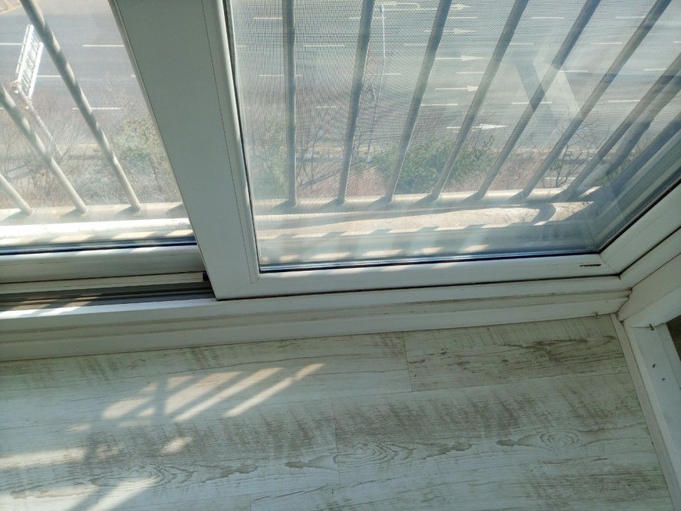 청소가 진행 됩니다.베란다의 쓰레기와 먼지 제거를 한 다음
