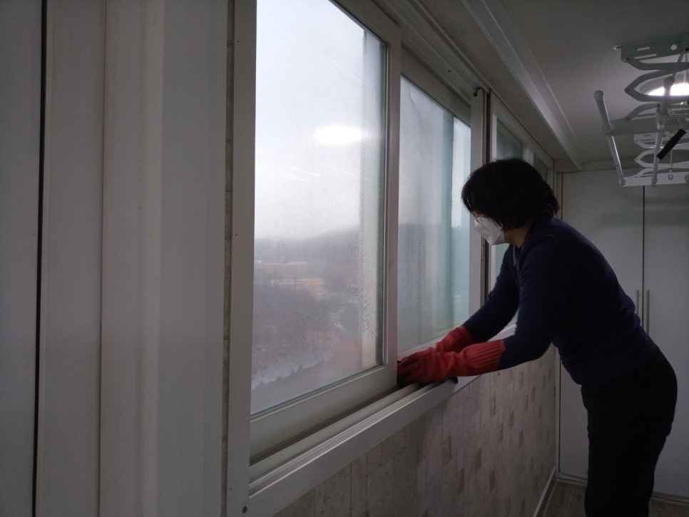 먼저 약품 처리를 해 놓고 곰팡이 제거를 하고 난 후에