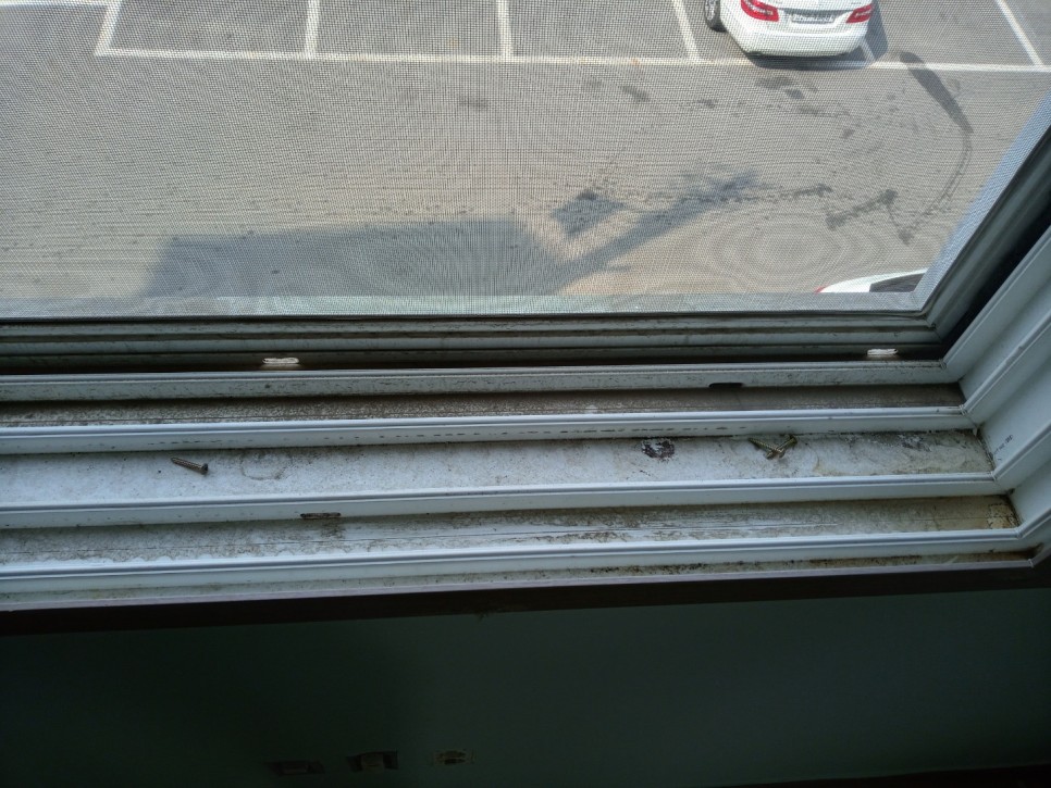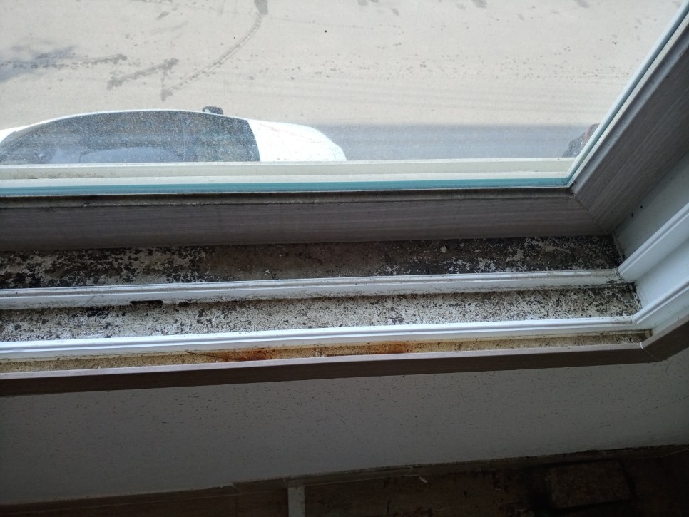 창틀 윗부분에도 빗물과 흙먼지들로