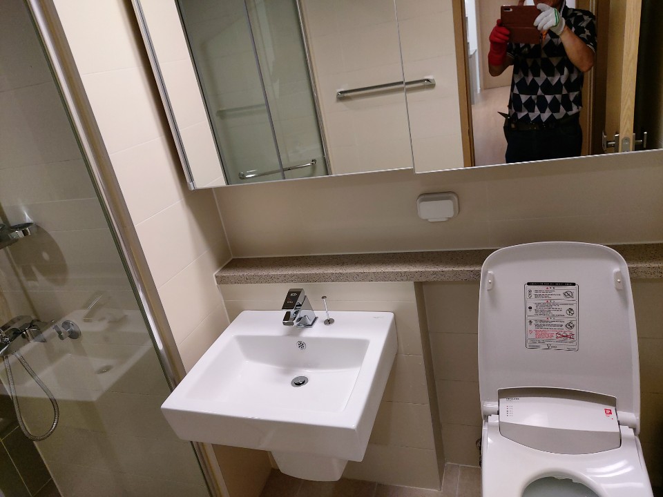 수전과 변기는 스펀지를 사용하여