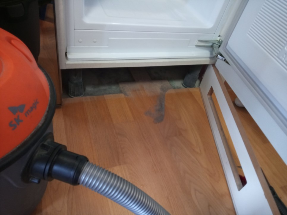 수납장 구석구석에도 많은 먼지가 남아있습니다.