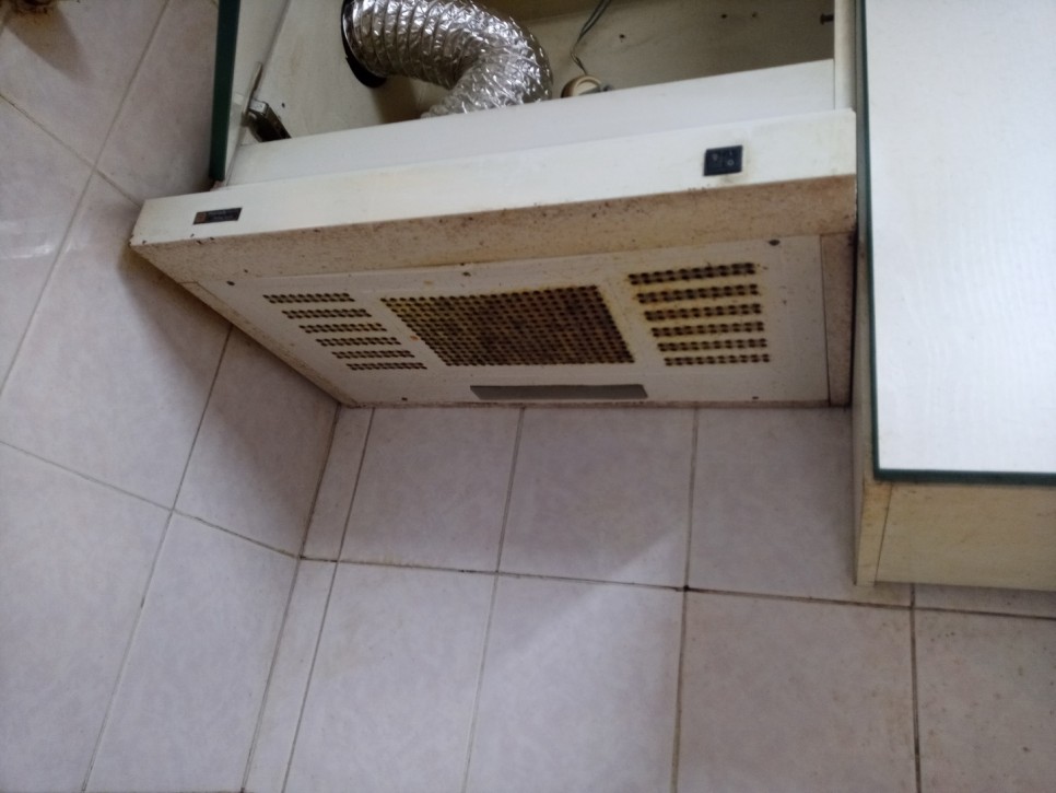 주방의 후드에는 기름때가 많습니다.