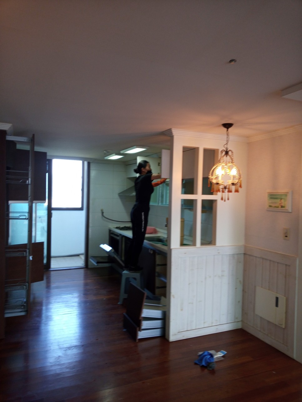 모든 수납장은 탈거해서 안보이는 곳까지 구석구석 청소!