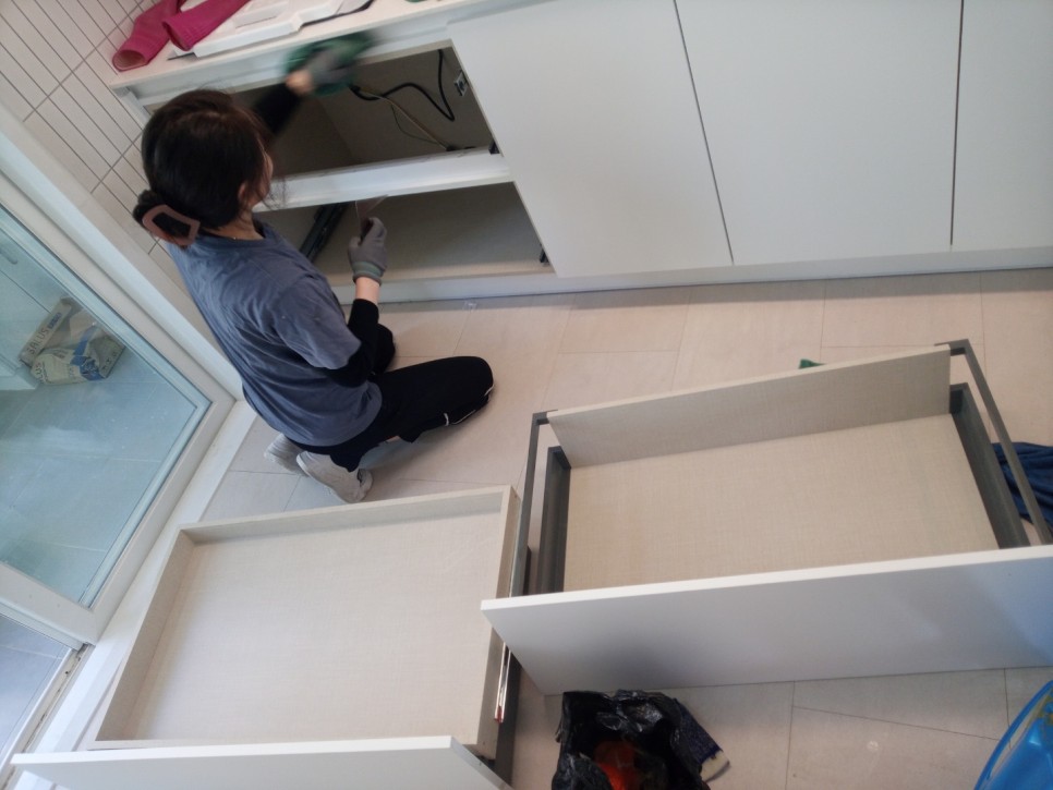 공사잔해와 먼지, 바닥청소 등 위에서 아래로