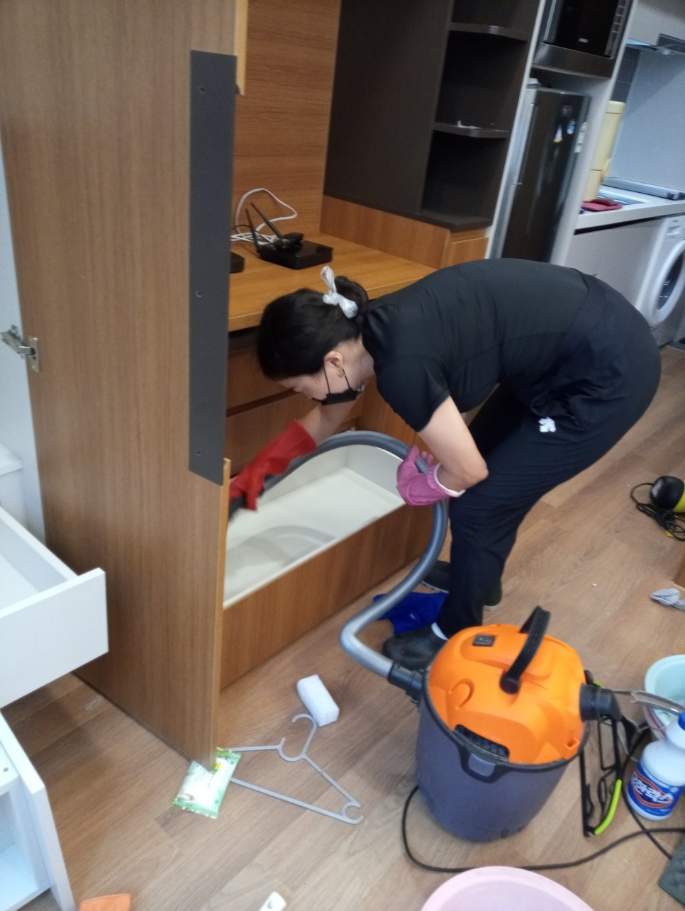 전세입자가 놓고간 물건도 치워가면서 깨끗하게 청소합니다.
