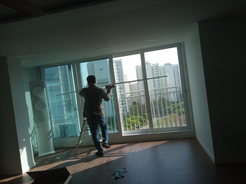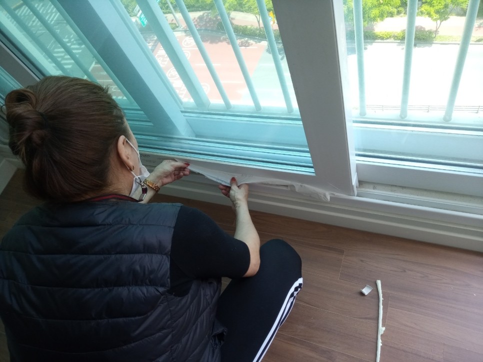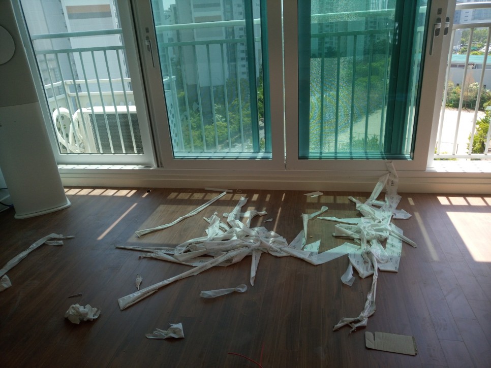 창틀의 씨트지제거 후 모든곳에 공사분진의