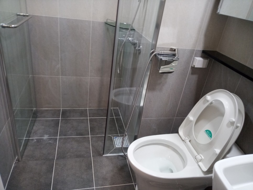 바닥에는 타일접착제,실리콘은 곳곳에 있었고