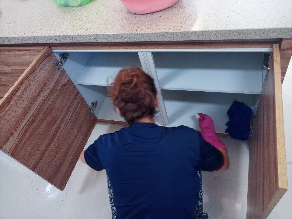 말끔하게 제거하고 닦아냈습니다...!!싱크대 수납공간의 쓰레기를 치우고 걸레받이도