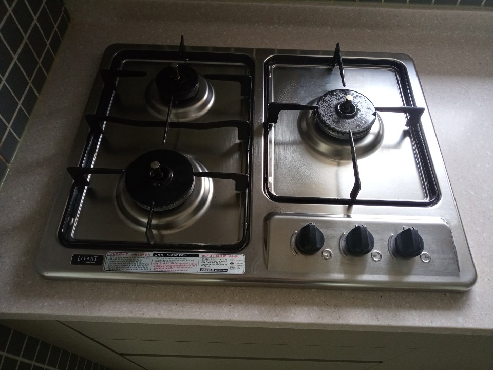 꼼꼼하게 기름때 닦아 제거한 주방.