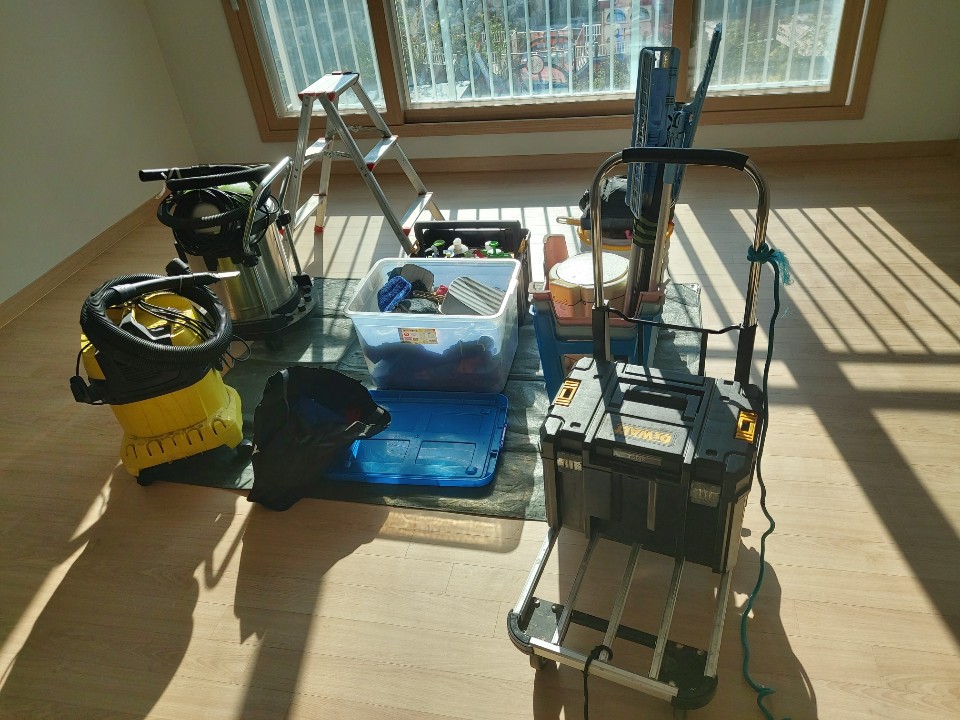 공사후의 분진가루는 진공청서기로