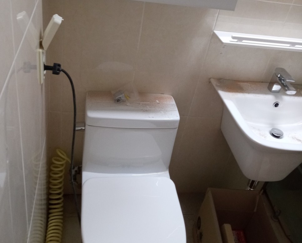 리모델링후에 화장실은 벽면에 백시멘트가루와
