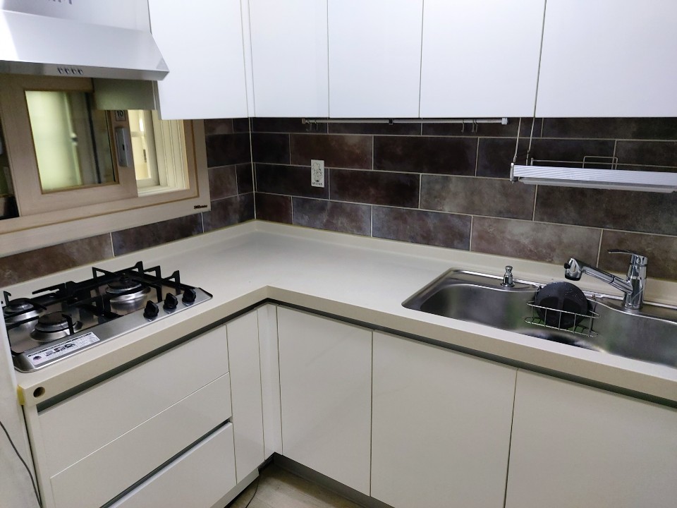 ​음식물 양념으로 얼룩진 주방의 벽면도