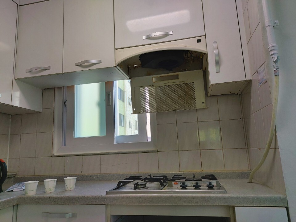 후드와 가스레인지 모두 탈거해 깨끗하게