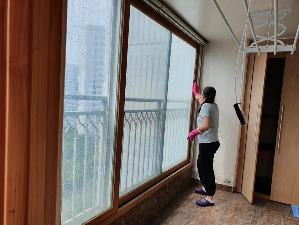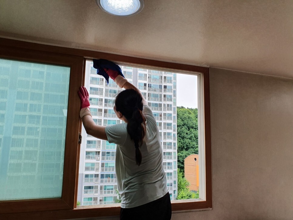 생각하시는 것보다는 시간이 오래 걸립니다.창틀은 1차로 붙어있는 묵은 먼지를 솔로