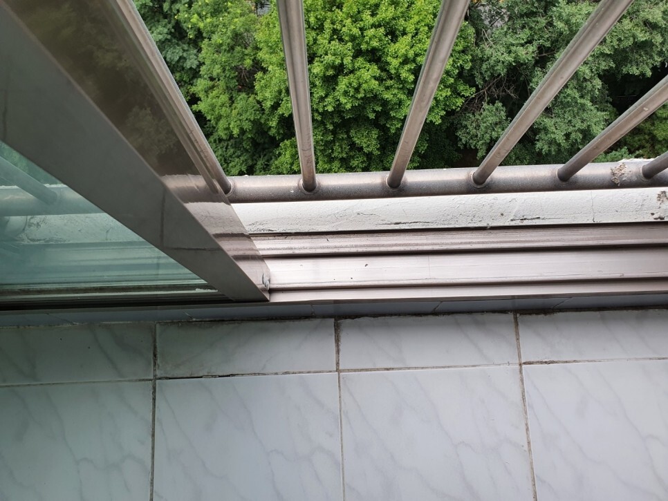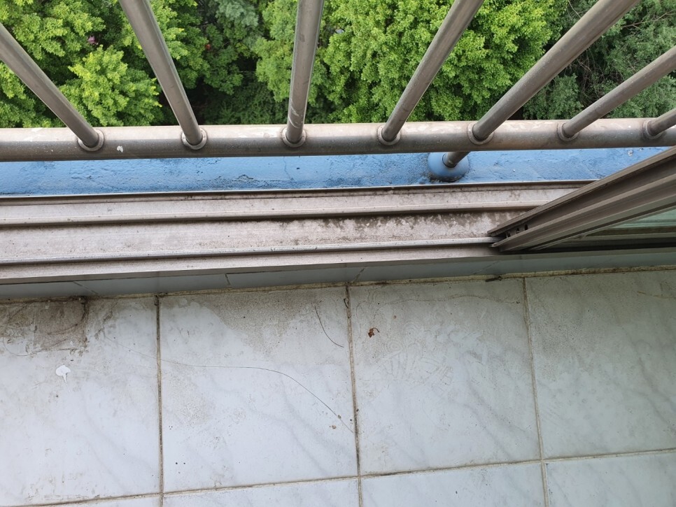 창틀은 시멘트자국과 묵은때들이