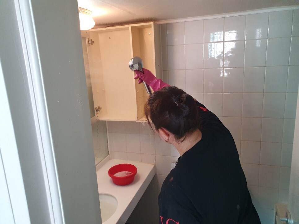 창틀 문틀 방충망의 청소가 진행됩니다.천장과 수납장 모두 닦아내고 옆타일부터