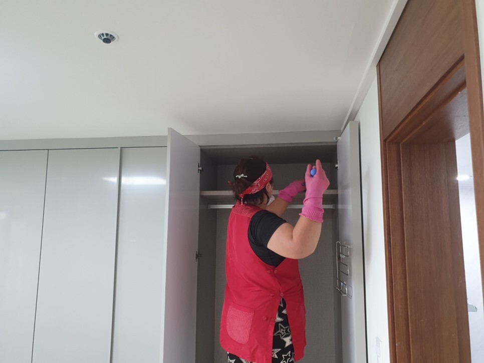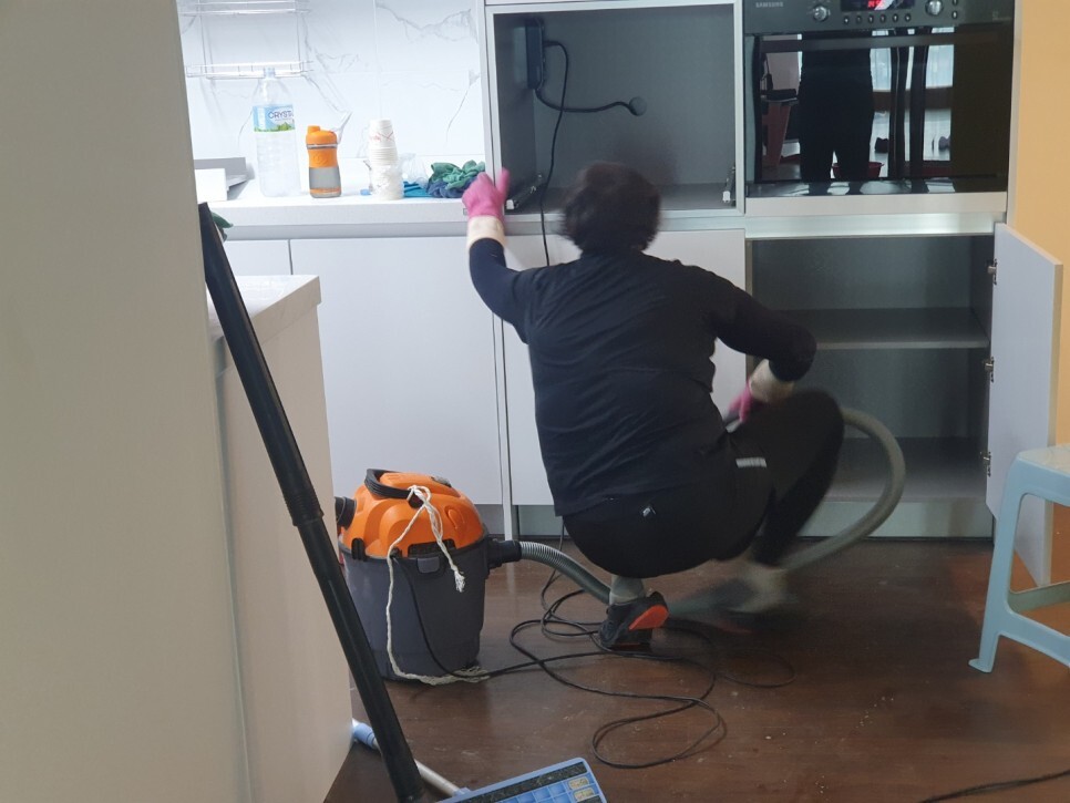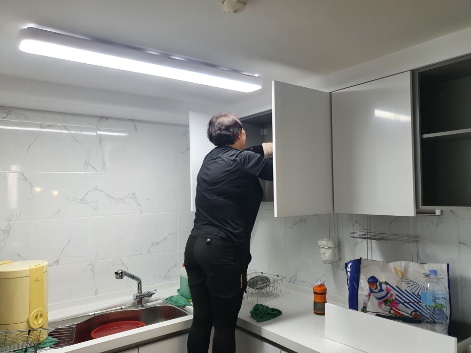 늘어 붙어 있던 오염물질을 제거합니다.탈거가 가능한 수납장은 모두 탈거하여