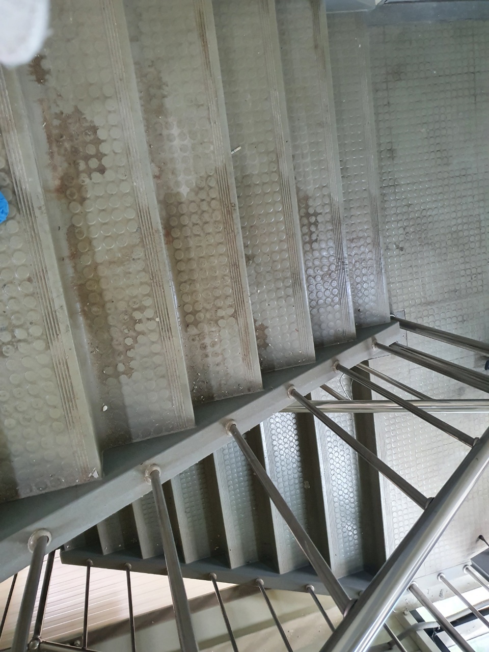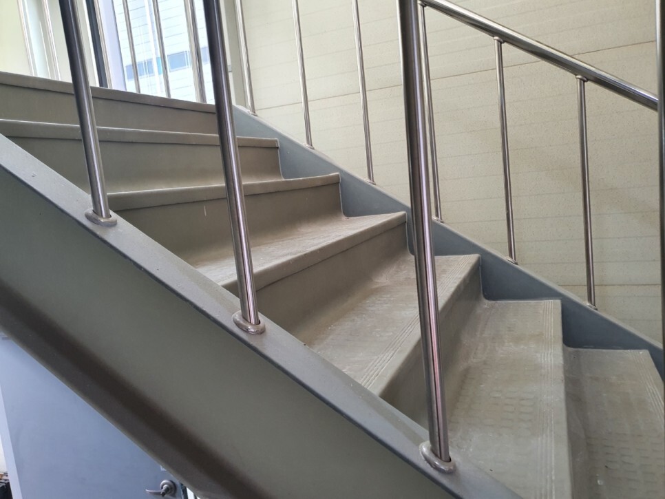 바닥을 깨끗하게 마무리했습니다.계단은 공사를 하면서 오염된바닥청소를