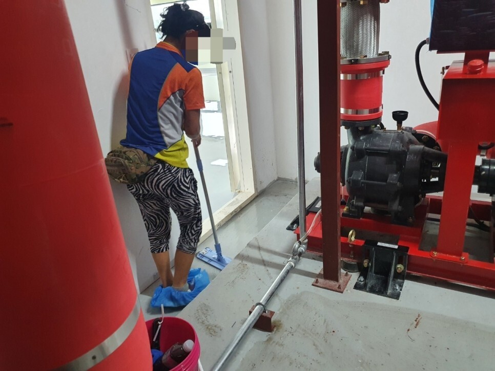 억제하고 있습니다.기계실에 공사잔해물과 먼지제거를 하고