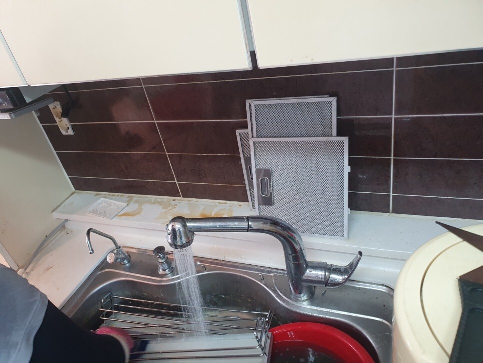 전문약품을 투여해 녹인다음 세밀하게 닦아냅니다.모든 주방 수납장에는 각종 양념들과