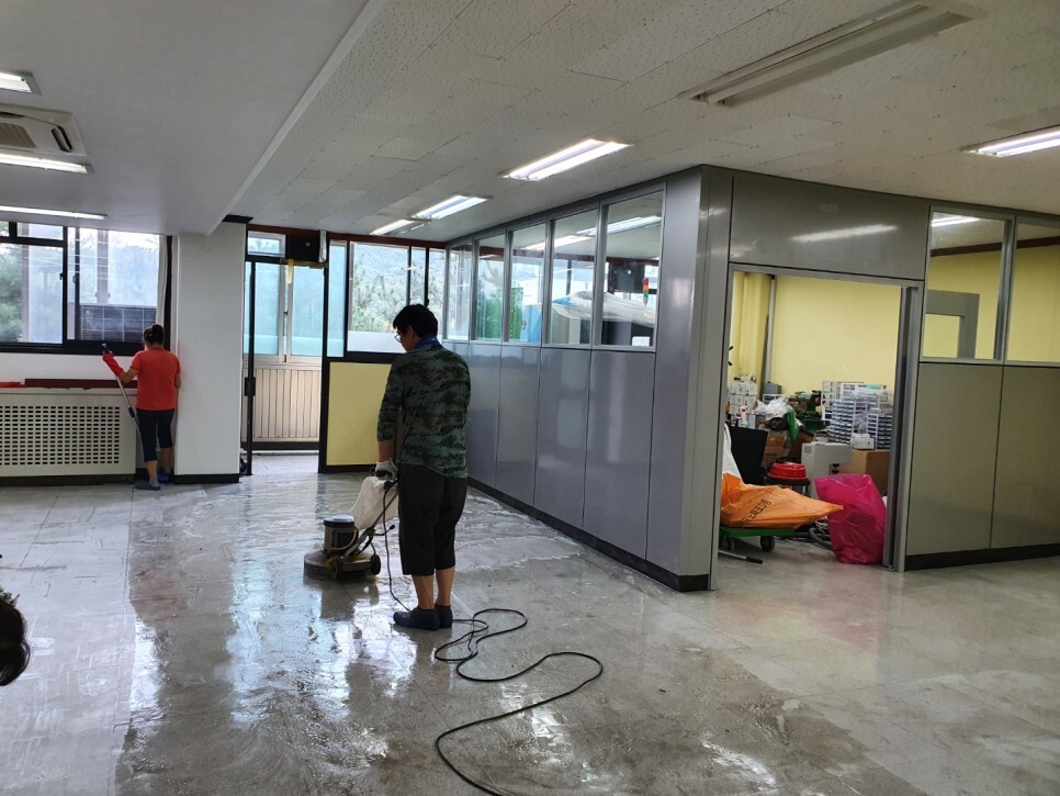 새로 바닥왁스를 코팅하여 깔끔하게 마무리한