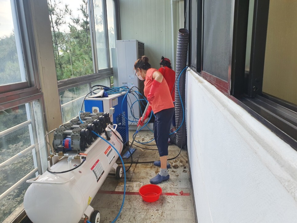 바닥청소는 기계로 작업을하며,