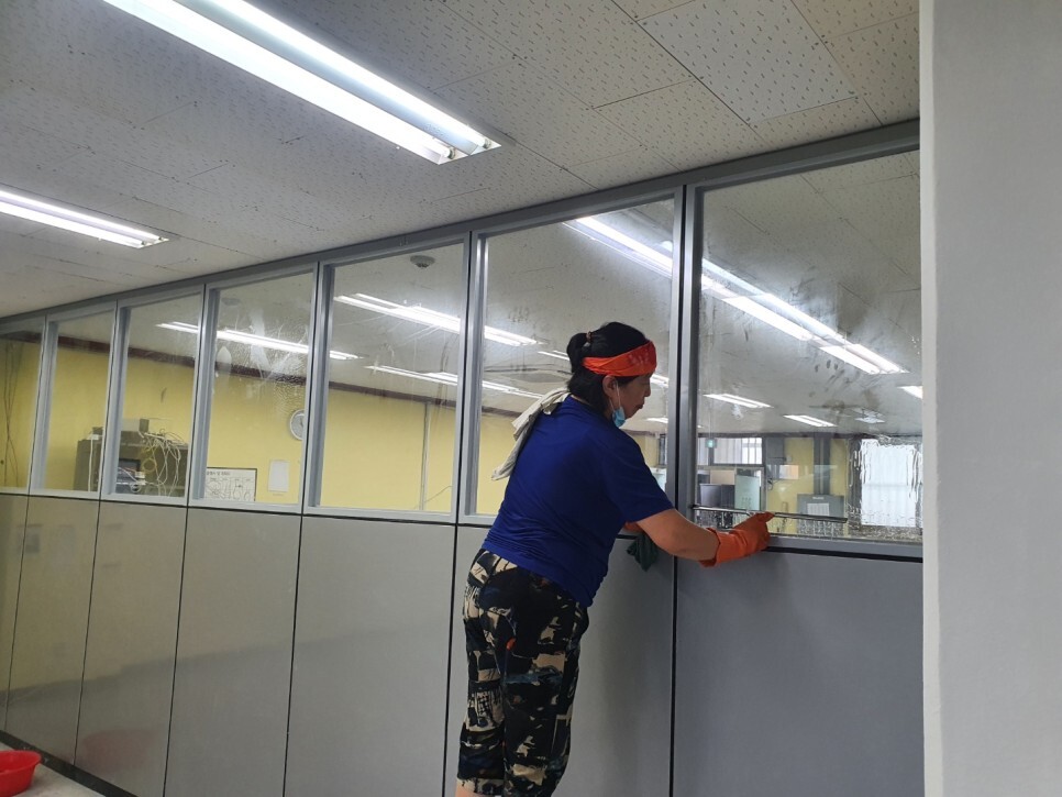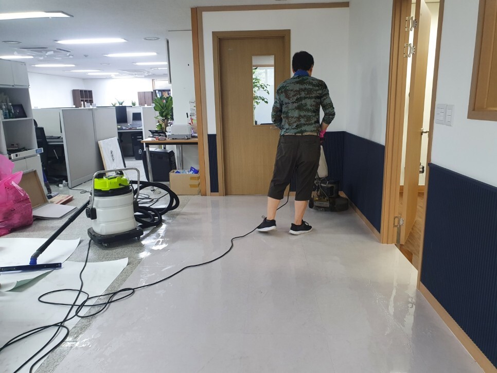 오염이 심한 사무실 바닥을 청결하게 청소후