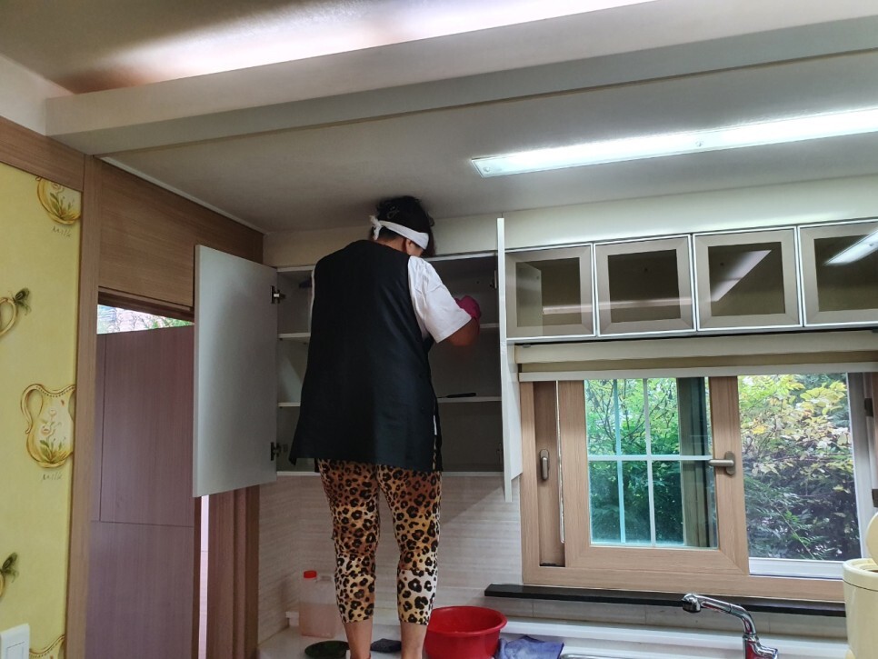 싱크대 안쪽은 물론 수납장을 완전히 탈거 후