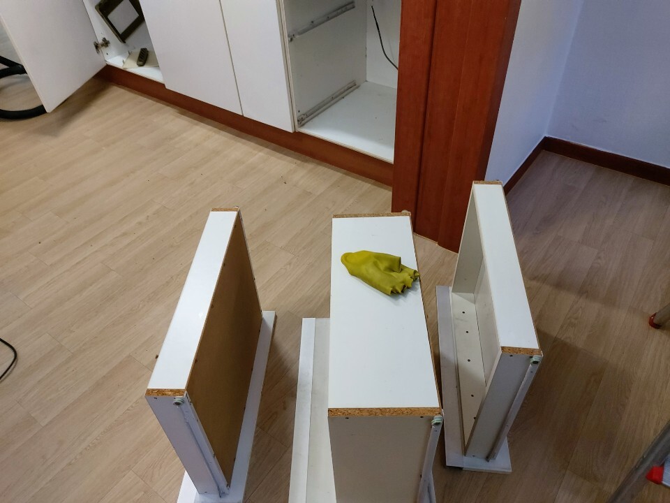 씽크대 하부장과 서랍들은 탈 후 세심하게