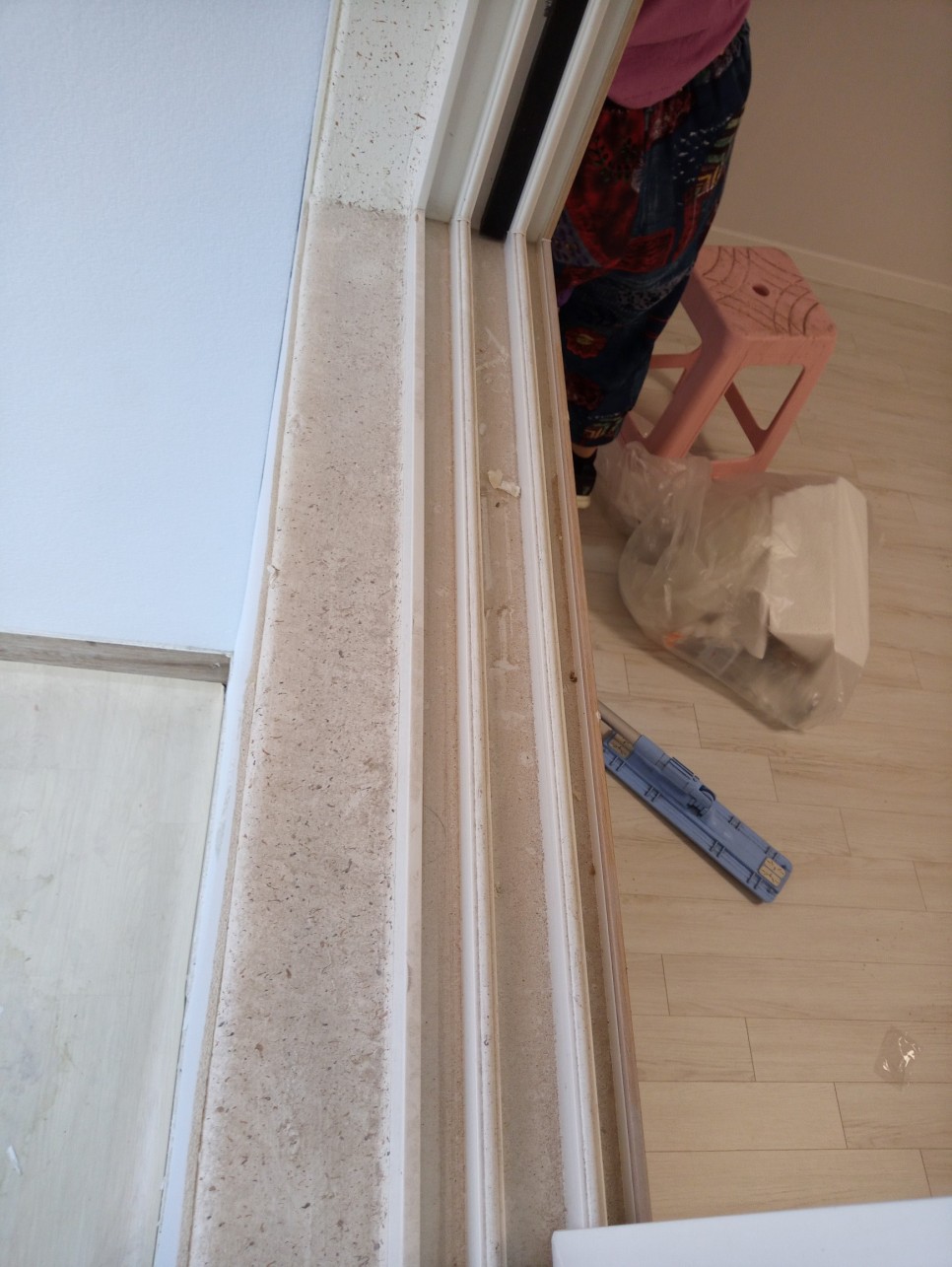 창문틀은 시멘트분진과 먼지,이물질이 ....