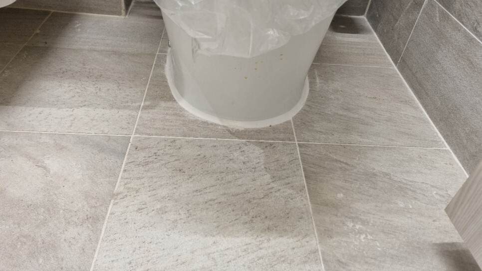 타일바닥에는 착색 , 때가 끼기 쉽고