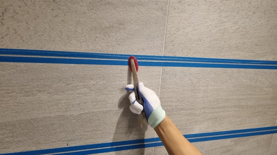 타일 한줄 한줄 마스킹테이프 작업을 합니다.